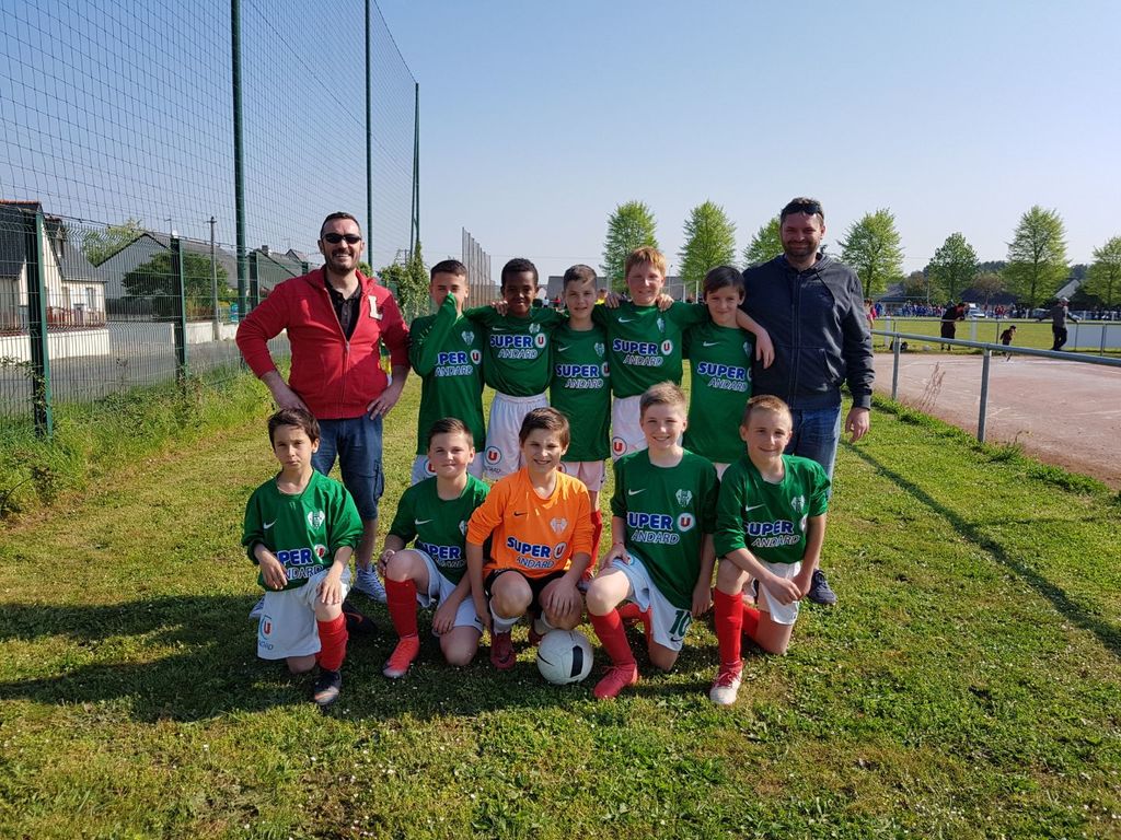 Voici l'équipe avec ses coachs qui nous représente au tournoi aujourd'hui qui se déroule à St-Lambert du Lattay.