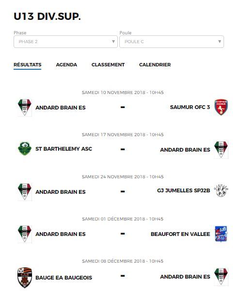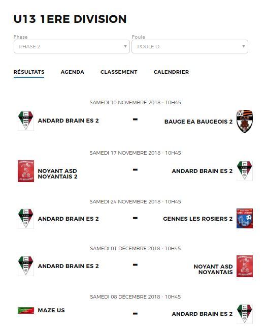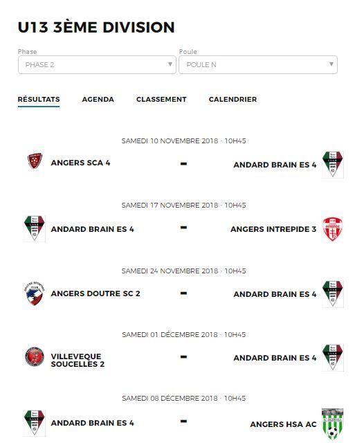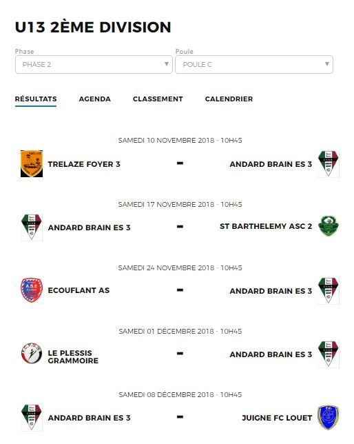 GJF Corné-Andard-Brain : calendriers et résultats